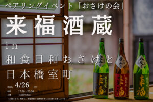 2025年04月26日 日本酒と和食の至高のペアリングをお楽しみいただくイベント「おさけの会」。 4月26日にお迎えするのは、茨城県の来福酒造さま。江戸時代の1716年(享保元年)創業し、伝統を重んじつつも、花酵母を活用 … 続きを読む 【おさけの会】来福酒造×和食日和おさけと日本橋室町