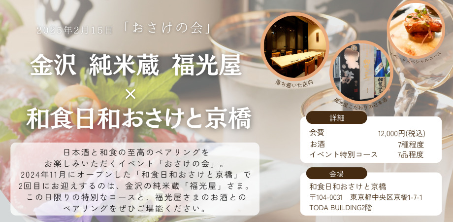 【おさけの会】「加賀鳶」金沢 純米蔵 福光屋×和食日和おさけと 京橋