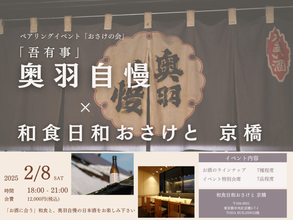 【おさけの会】「吾有事」奥羽自慢×和食日和おさけと 京橋