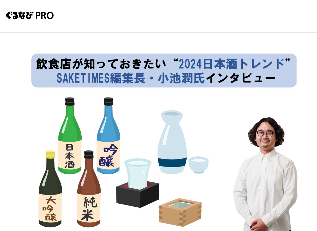 【メディア掲載】ぐるなび通信「飲食店が知っておきたい“2024日本酒トレンド”SAKETIMES編集長・小池潤氏インタビュー」