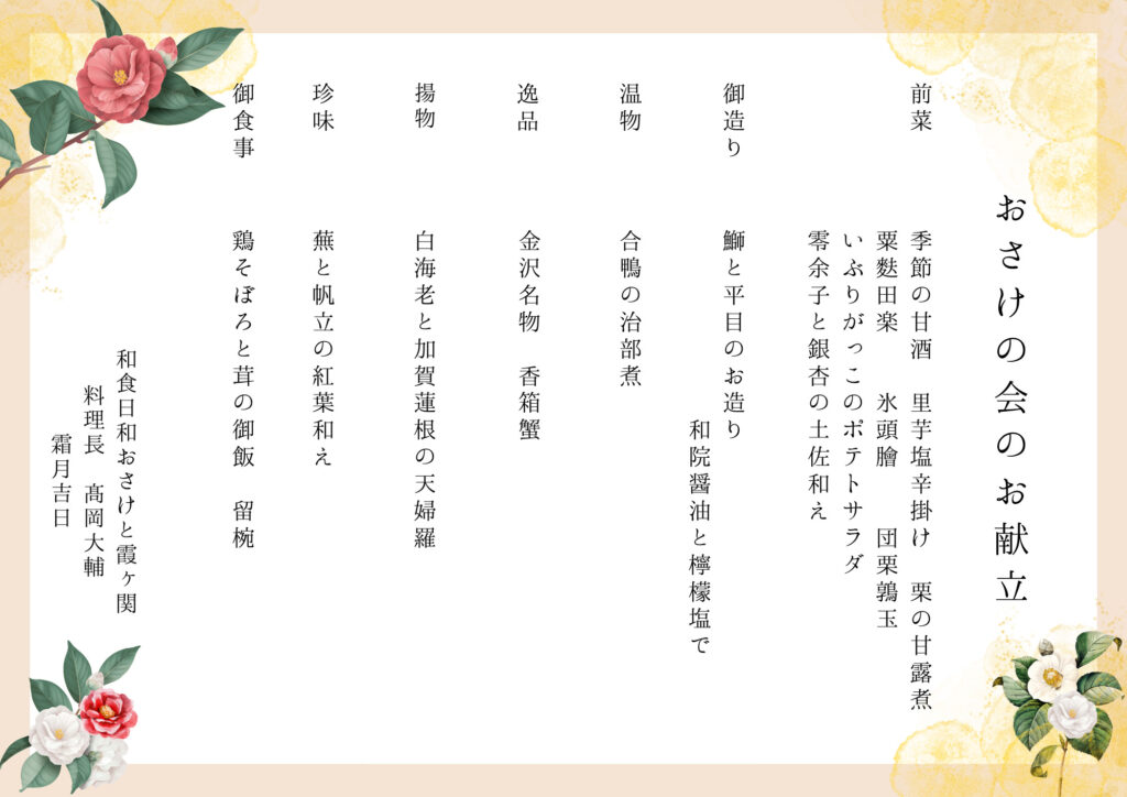 HOME > ジャーナル > 「おさけの会」の献立が決定いたしました