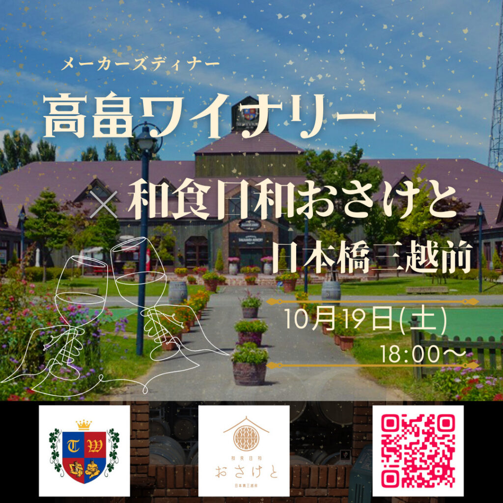 【おさけの会のお知らせ】高畠ワイナリー×和食日和おさけと日本橋三越前