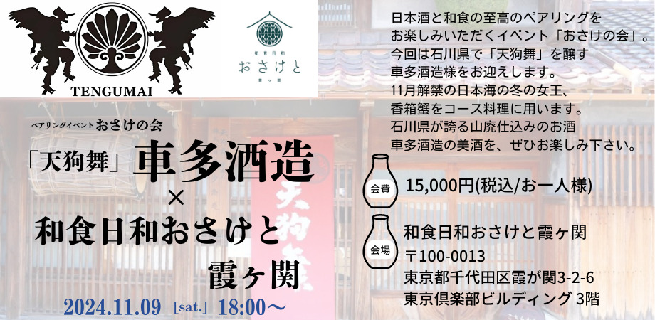 【おさけの会のお知らせ】「天狗舞」車多酒造×和食日和おさけと霞ヶ関