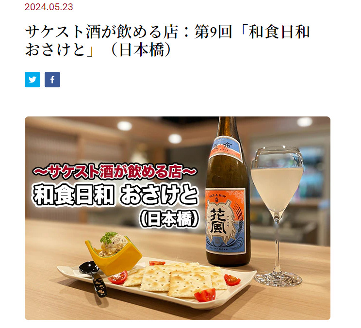 【メディア掲載】SAKE Street「サケスト酒が飲める店」としてご紹介いただきました