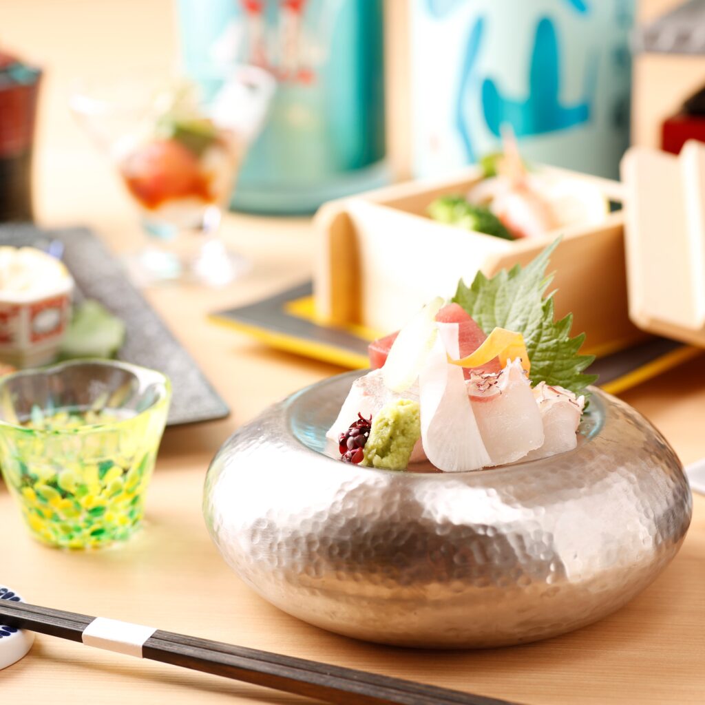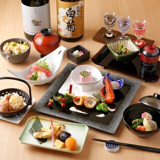 日本酒との相性も抜群の旬会席。バランスの良い料理構成で銘々盛りでご提供しますので、ご接待にもおススメです。