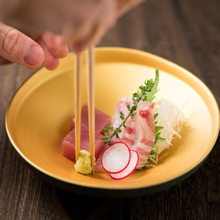 【造里】生鮪入り本日の鮮魚 三種盛り合わせ 妻一式