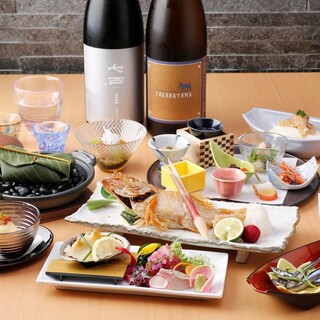 日本酒との相性も抜群の旬会席。バランスの良い料理構成で銘々盛りでご提供しますので、ご接待にもおススメです。