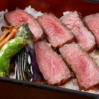 芳醇な香りと旨味の詰まった味わいが人気の「伊賀牛」 を 贅沢にステーキ重でご用意致します。 とろけるような肉の旨味をこだわりのお米でお召し上がりください。