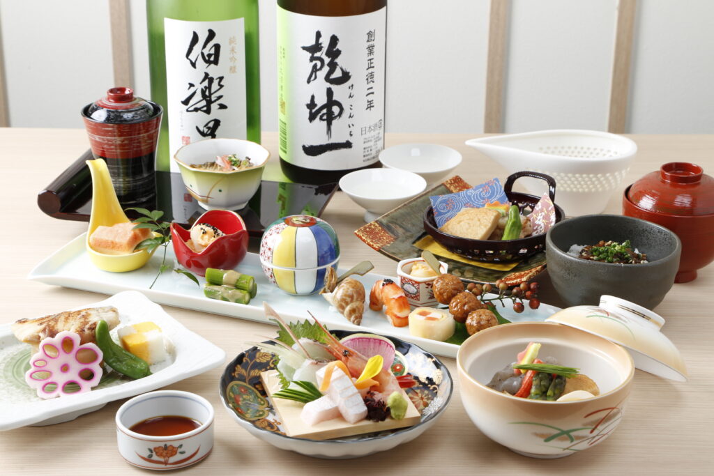 日本酒との相性も抜群の旬会席。バランスの良い料理構成で銘々盛りでご提供しますので、ご接待にもおススメです。