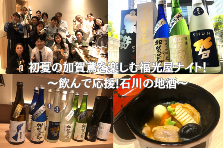 2024年5月11日 石川県 福光屋の松前様をお迎えし、ペアリングイベント「おさけの会」を開催いたしました。会場は3月15日にオープンしたばかりの「和食日和おさけと日本橋三越前」。おさけの会の常連様や福光屋ファンの方、各 … 続きを読む 〔おさけの会〕初夏の加賀鳶を楽しむ福光屋ナイト!~飲んで応援!石川の地酒~