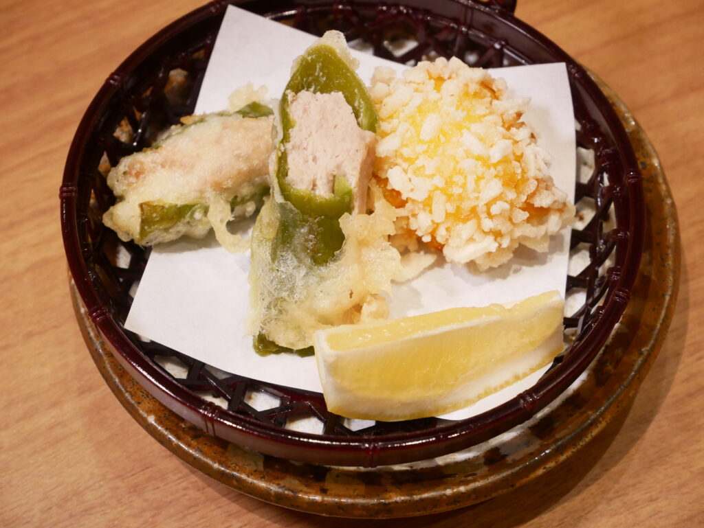 コーンクリームの霰揚げは食感も楽しく、玉蜀黍の優しい甘みも感じられます。