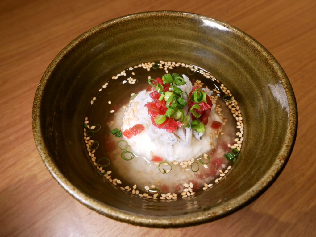 カリカリ梅の食感が楽しい、夏の〆にぴったりの出汁茶漬け。