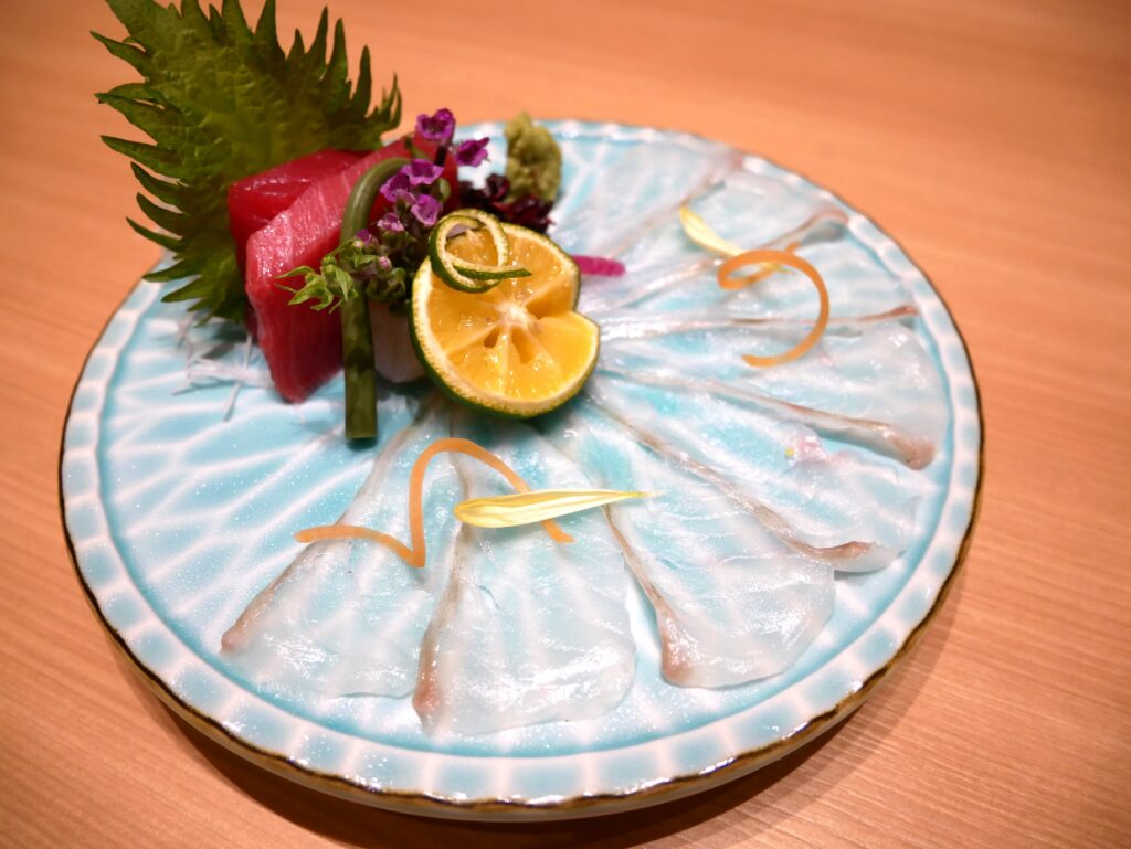 【御造り】平目うす造りと旬鮮魚二種盛り